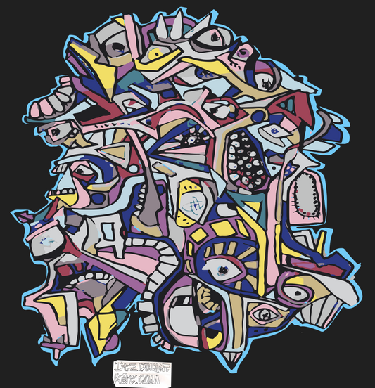 Here Now art work painted then digitalized then pressed onto high quality t-shirt.